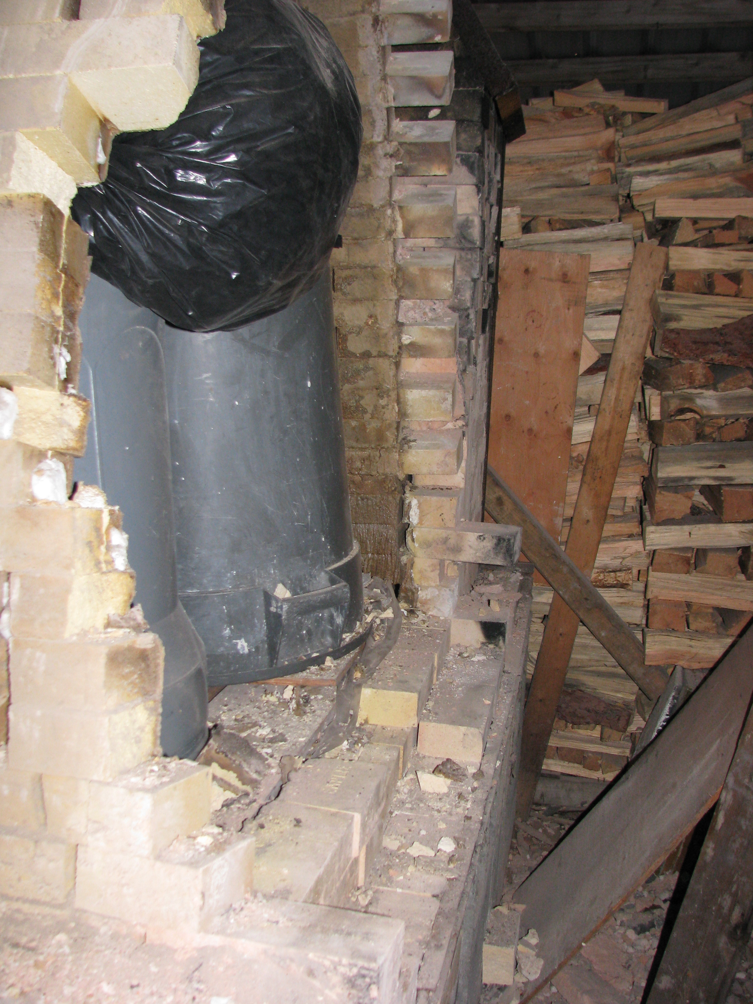 Arch, framework and stoke door removed, we started by resetting the flue brick.