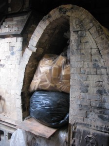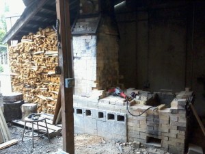 “Hey, did you guys notice how the chimney brick is kind of separating?  And how about how the firebox seems to have twisted?”  We could have easily torn the whole thing down if we really wanted to make things perfect.  Although these quirks of the kiln did make reconstruction a little frustrating, they didn’t compromise the integrity of future firings, and trying to fix them would have compromised our sanity.